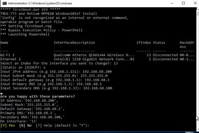 - Set the IPv4 address, subnet mask, default Gateway, and Primary and Secondary DNS address, then review the settings and press Y Enter if they are correct.
