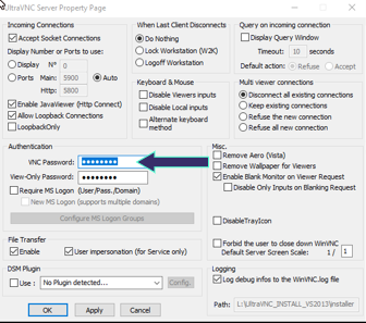 - Set the VNC Password. The VNC Properties page will pop up. Set the VNC password, this defaults in the image to mmpitram. Change this to a password selected by site and click apply, then ok to close.