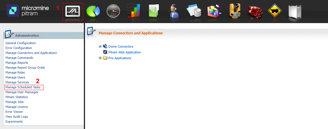 1. Log into Pitram Portal and select the System module, under Administration select the "Manage Scheduled Tasks" option.