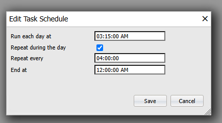 2. For the scheduled task "Olap Cube Generation" click Edit