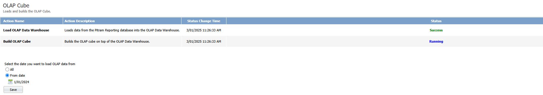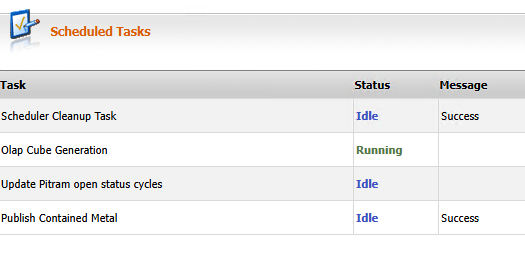 The DOMECube is hosted on SSAS and needs to be periodically refreshed with the latest data from the PITRAMReporting database. The function to manage this is available as a scheduled task within the Pitram Reporting module.