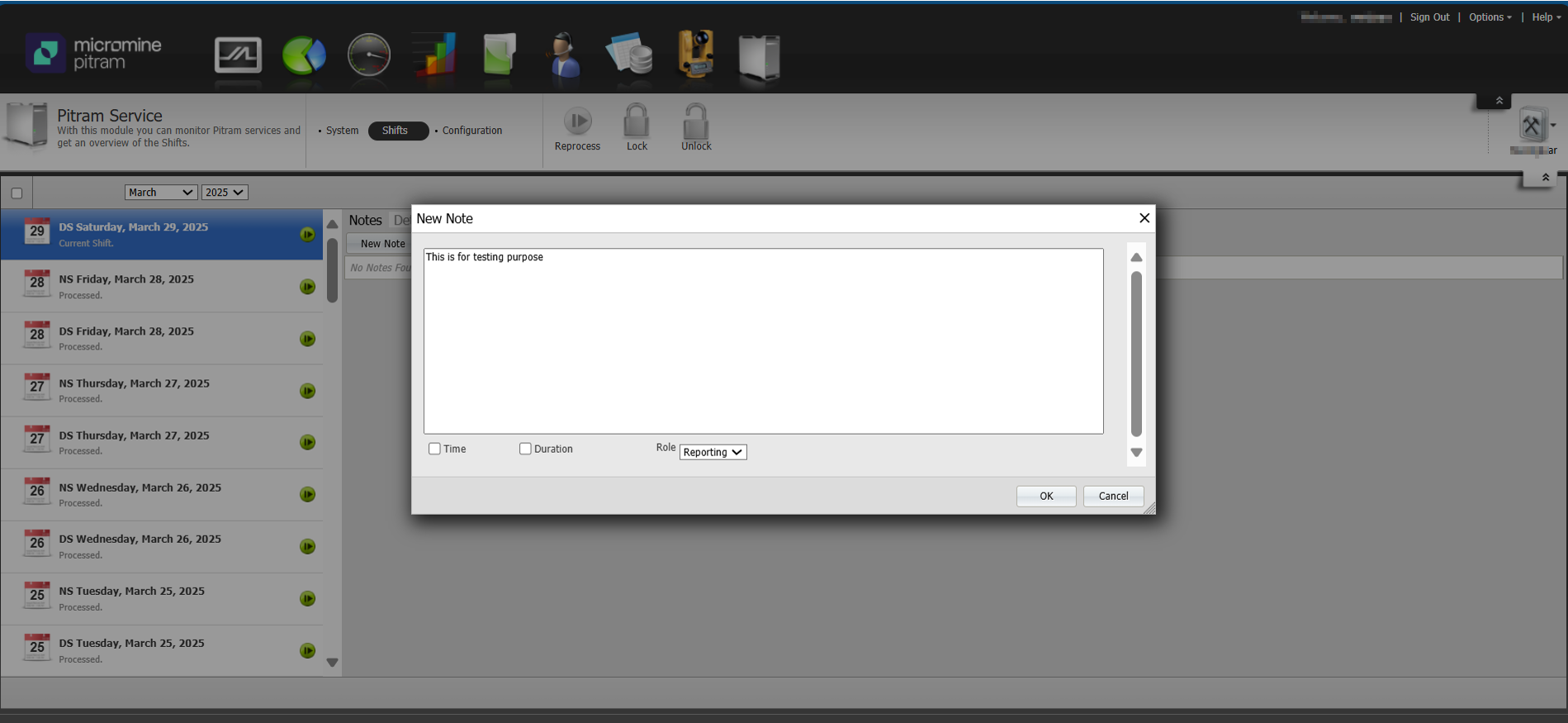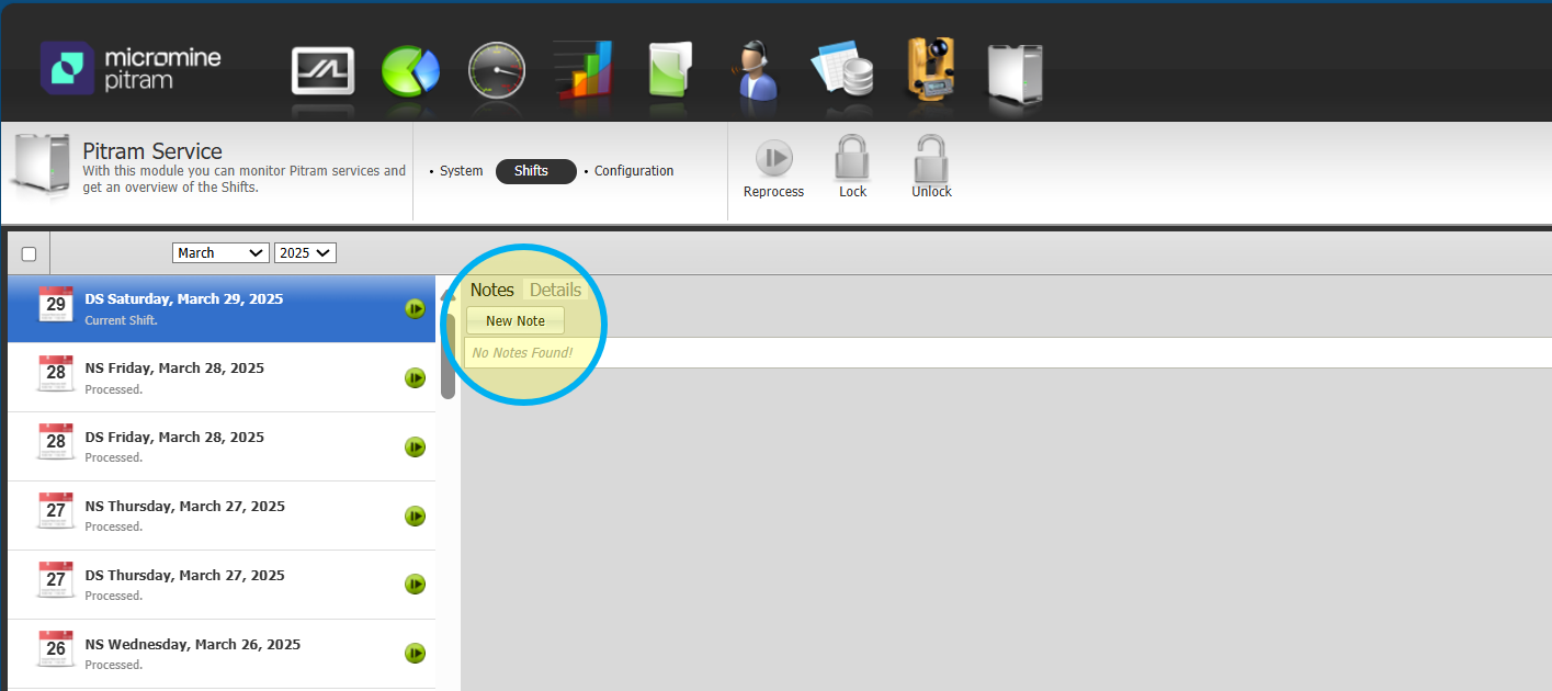3. Select a shift, then click on the "New Note" button..