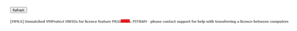 If you attempt to make any changes to the server without transferring the licence, then the following error will occur within the Pitram Portal > System > Manage Licence. This can only resolved through a request to our Pitram Licensing team which work standard office hours.