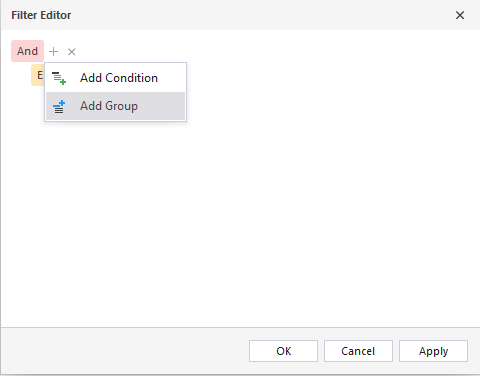 Next we want to filter the events to only include location changes and summed measures. Click the plus next to the And at the top, then click add group