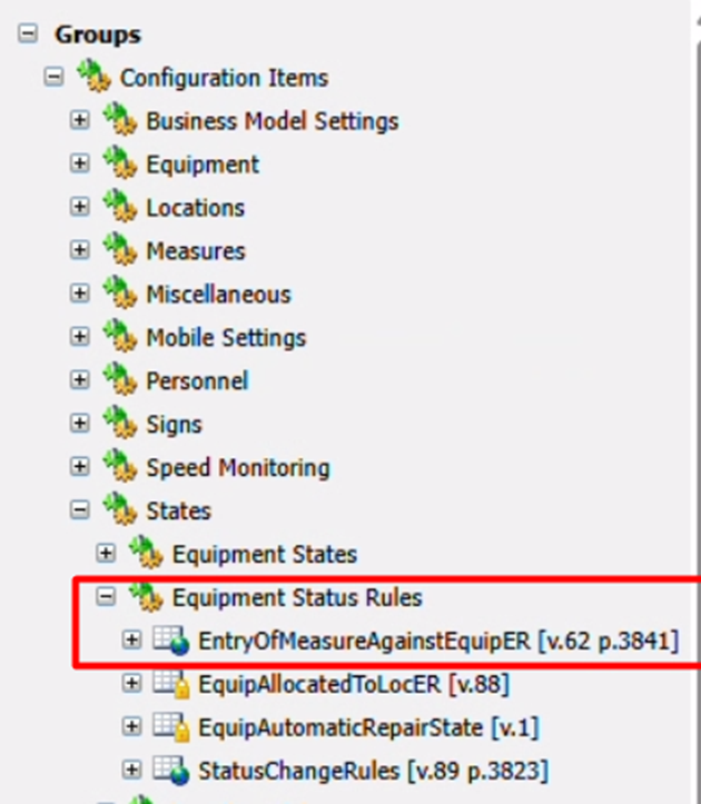 - Navega a Elementos de configuración | Estados | Reglas de estado del equipo | EntradaDeMedidaContraEquipER en el panel de navegación.