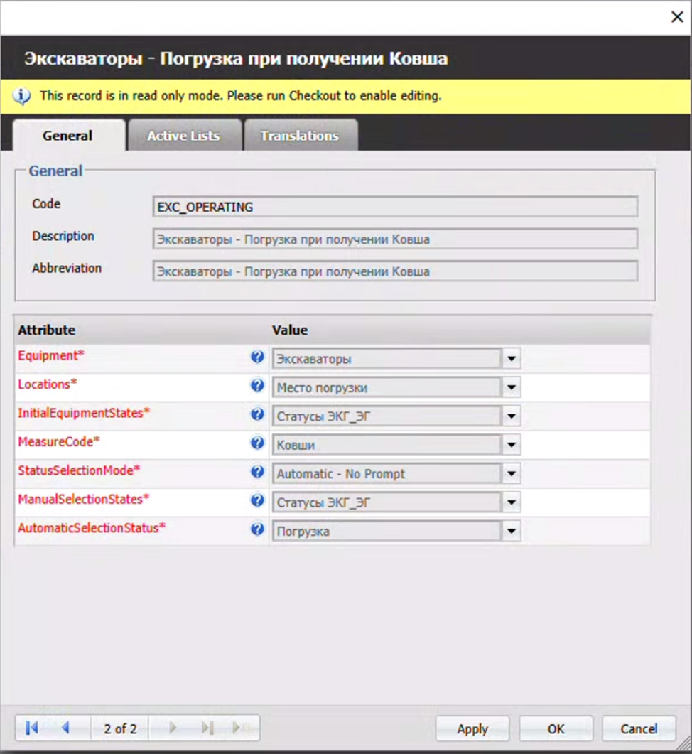 Si el ModoDeSelecciónDeEstado está configurado en cualquiera de los tres modos Automáticos, Tramming es el estado que se aplicará a la unidad de equipo. - Haz clic en OK para aplicar la configuración y cerrar la ventana de diálogo.